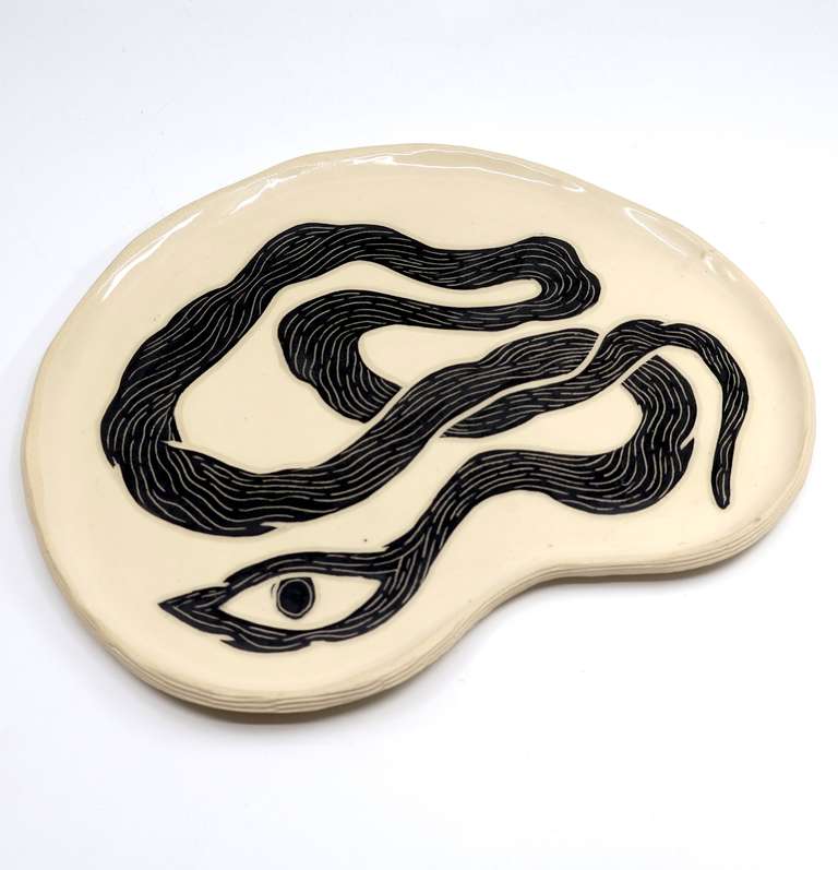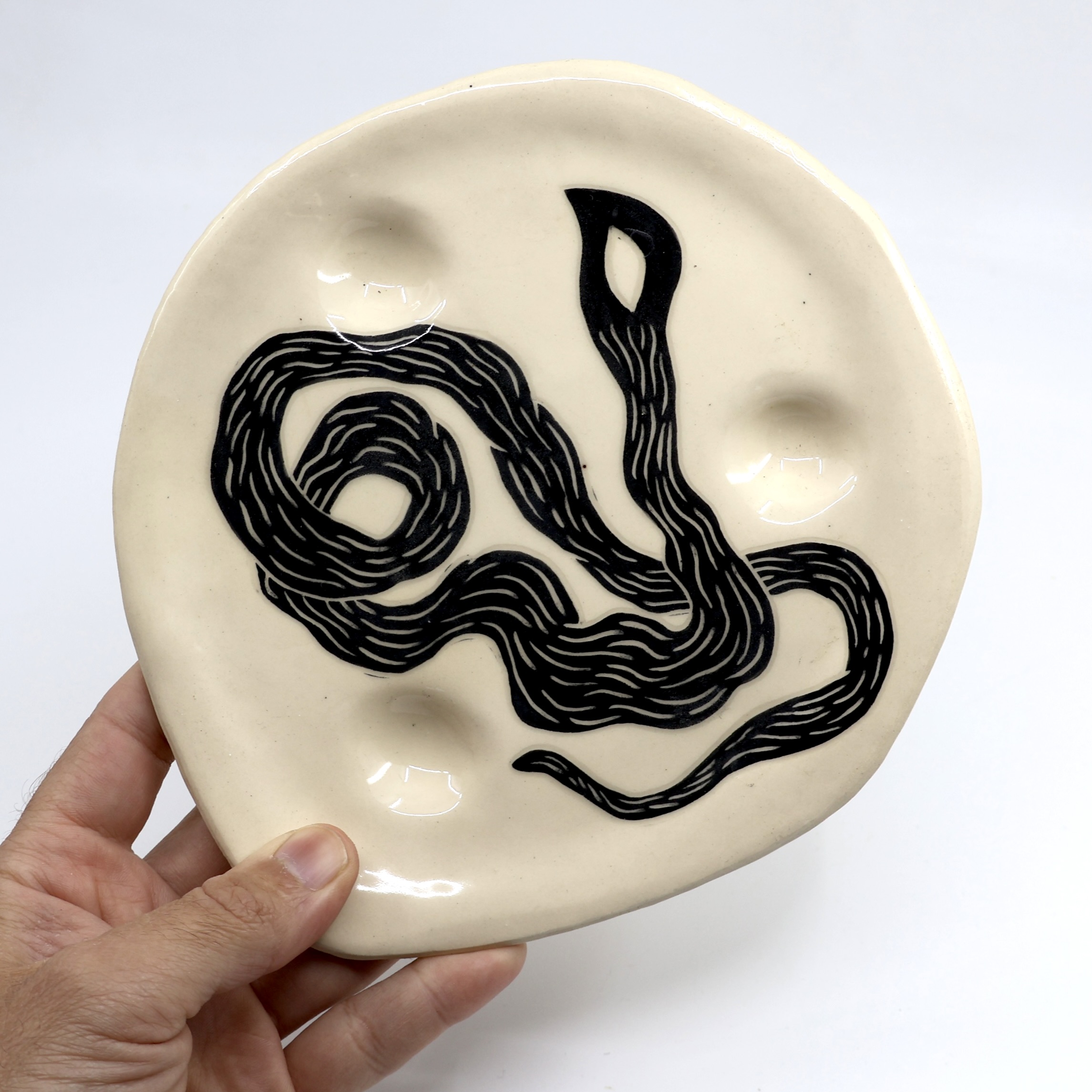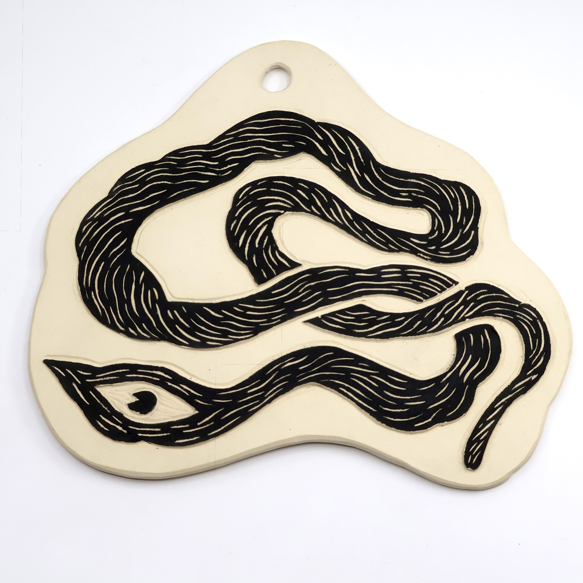 2025 was the year of the snake so I tried them in several forms. This wall hanging is unglazed, you can also see my signature on the back.