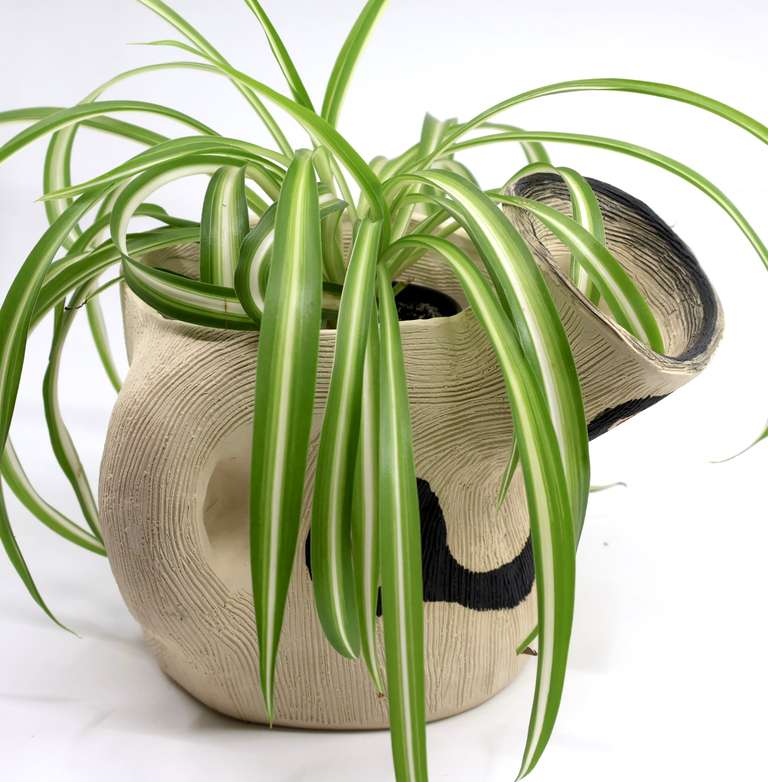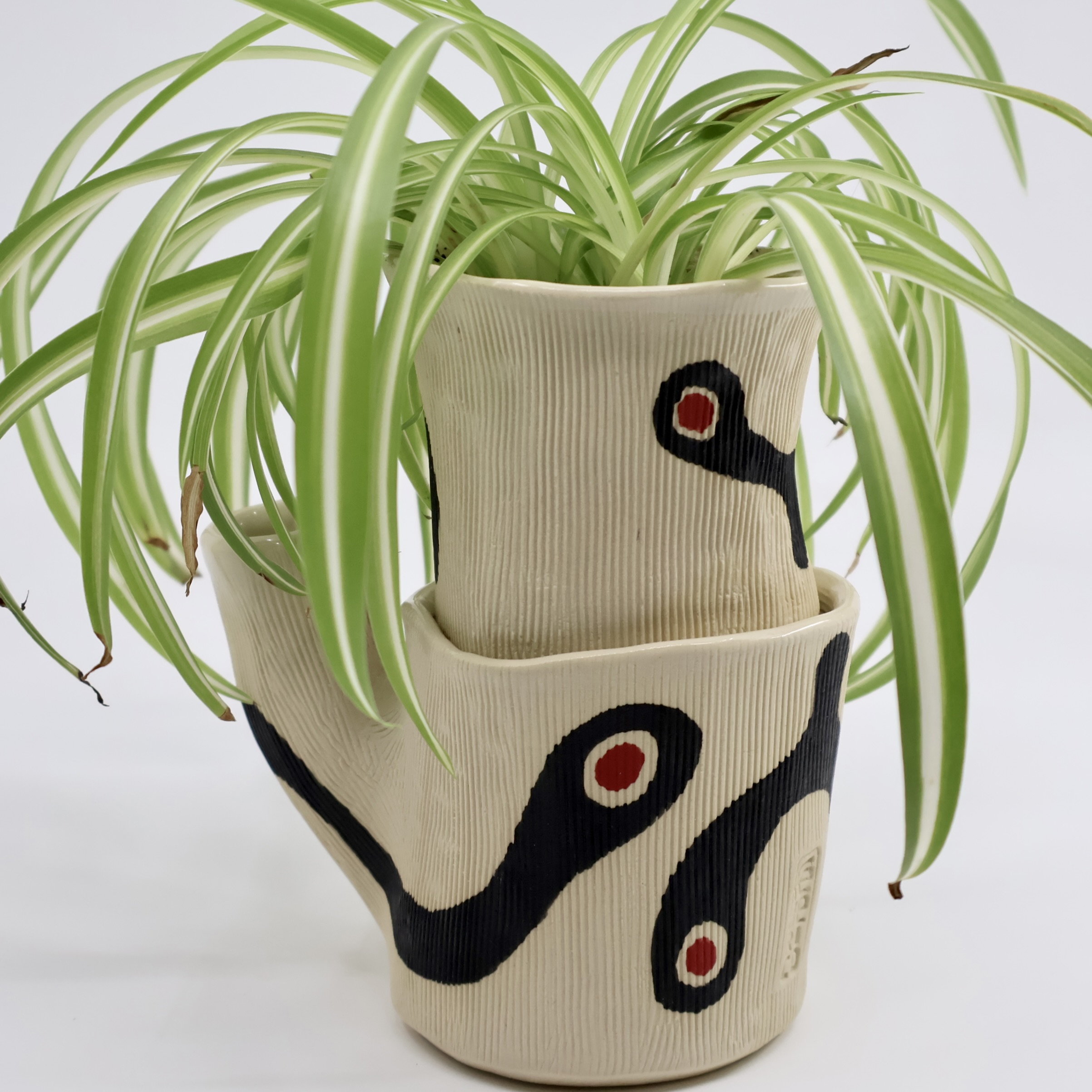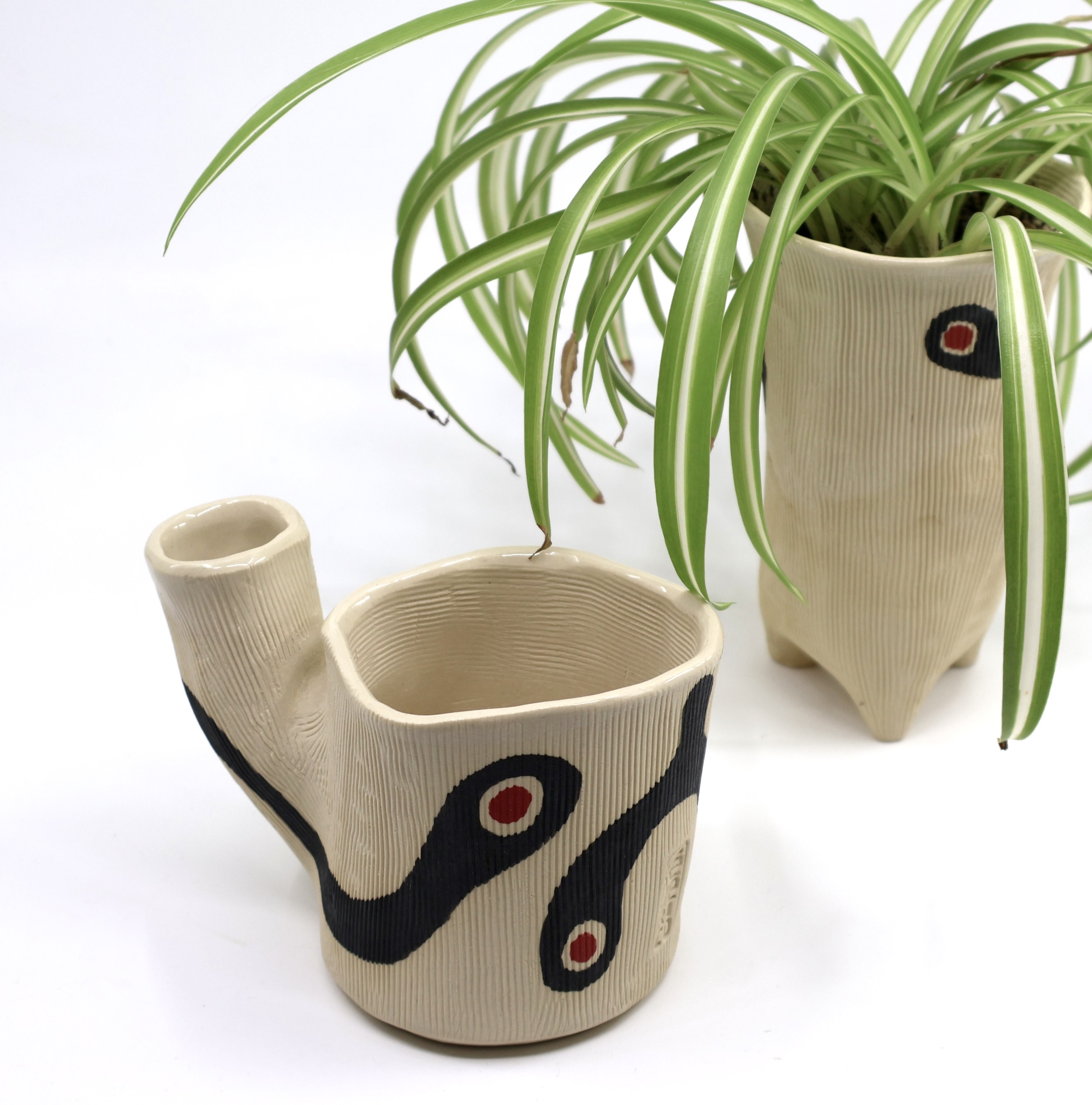 More experiments with texture and weird vessels. This one is intended to be a self watering pot so it was two parts that mate.