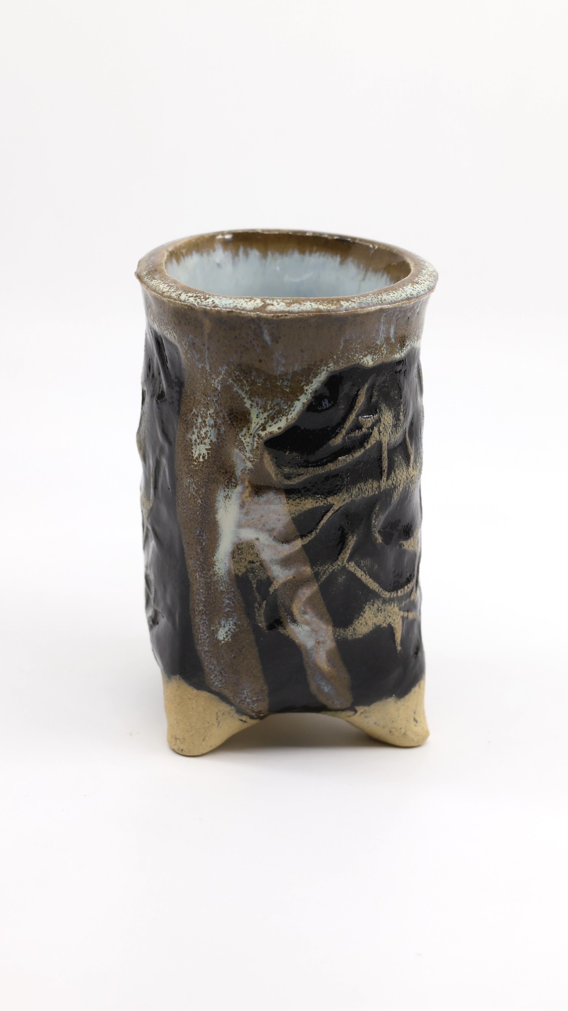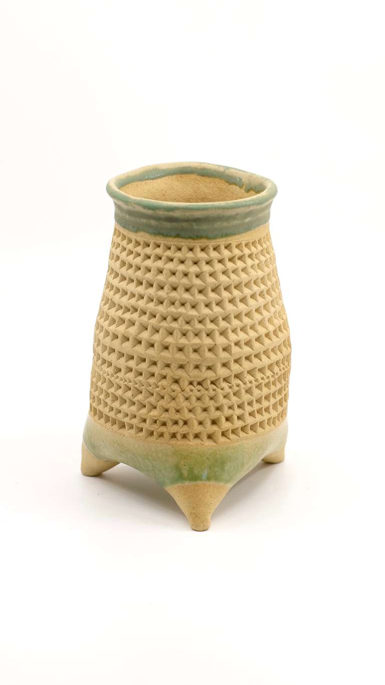 These weird vessels started coming up after a large scale hand building class with Natalia Sookias. Made with Laguna LB6 clay and decorated with Amaco underglaze. These are textured by hand and fired to cone 6, no glaze.