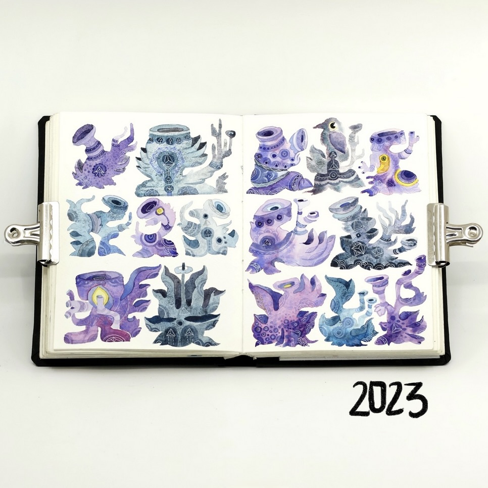 I was a little surprised when I actually started making them out of clay this year. Maybe there was some prescience in the sketchbooks, or maybe this is just what comes out of my hands when I'm improvising.